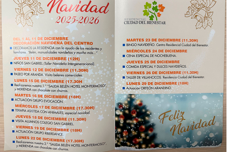 Un año más celebramos la llegada de la Navidad con un programa especial lleno de ilusión, convivencia y momentos para compartir. Queremos invitaros a todos a disfrutar de cada una de las actividades que hemos preparado con cariño y a vivir junto a nosotros el auténtico espíritu navideño.